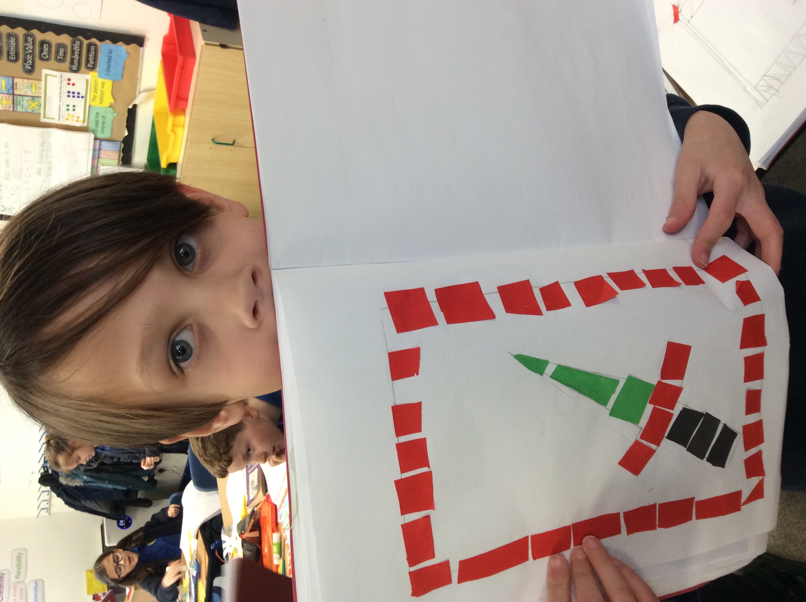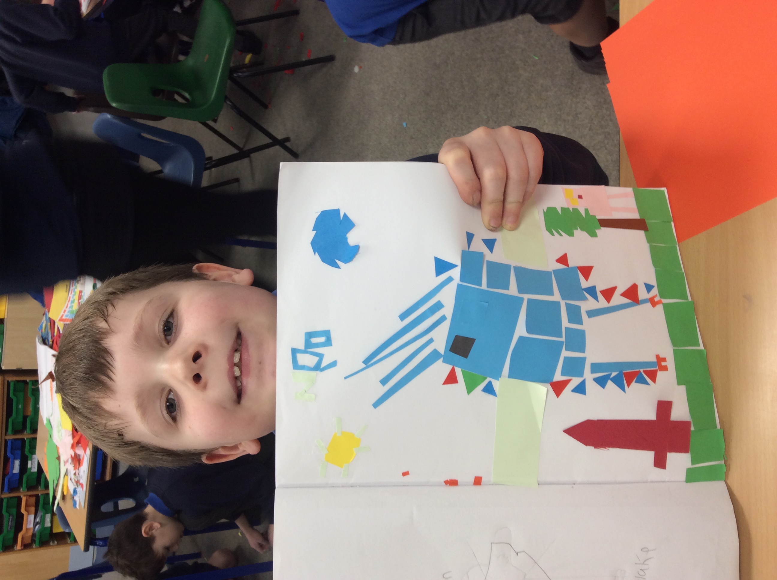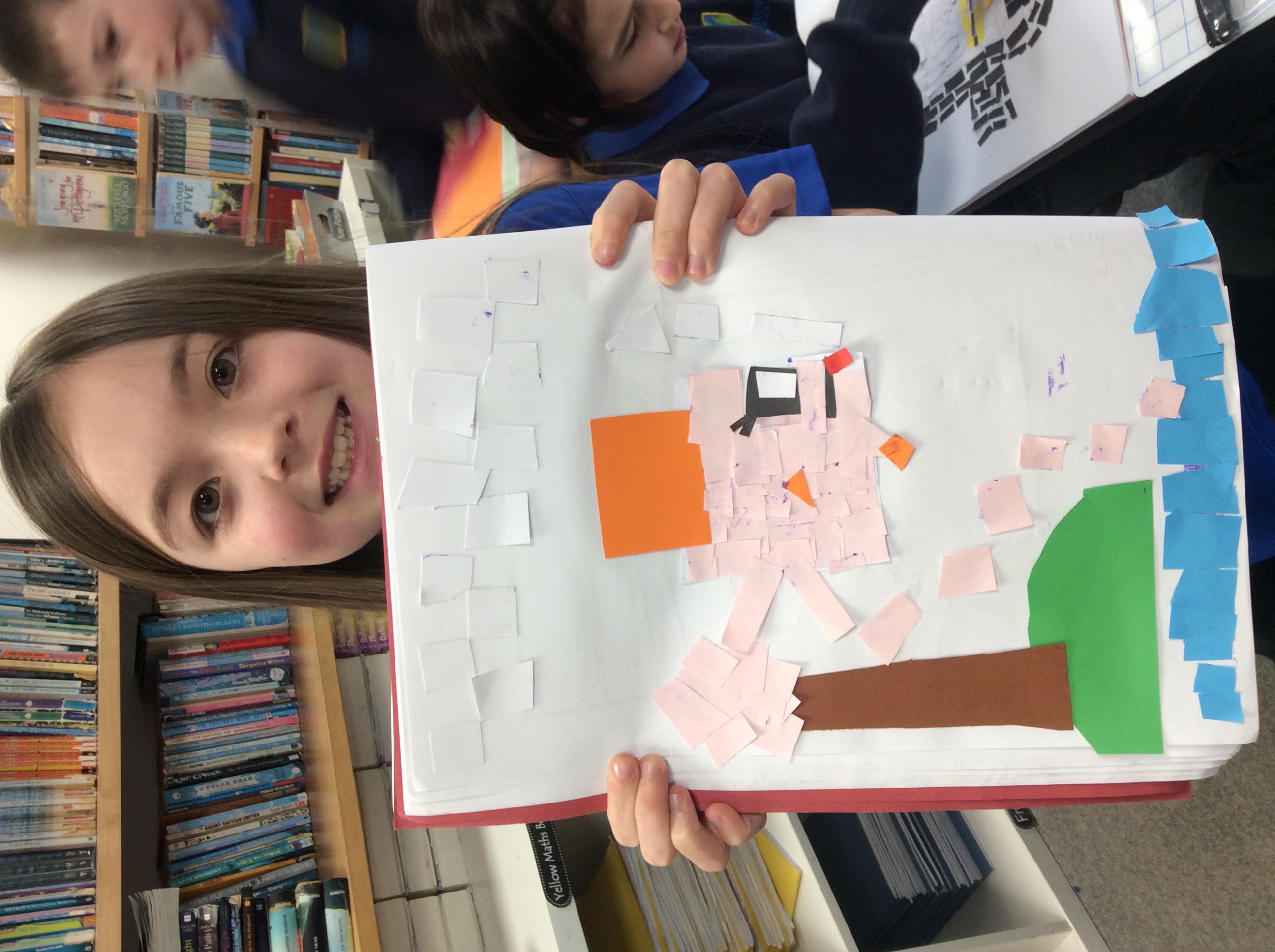 First, we carefully practiced our cutting techniques, focusing on the size and shape, making sure it wasn't too small. Then we moved on to cutting our coloured paper into small shapes. We made rectangles, squares, triangles