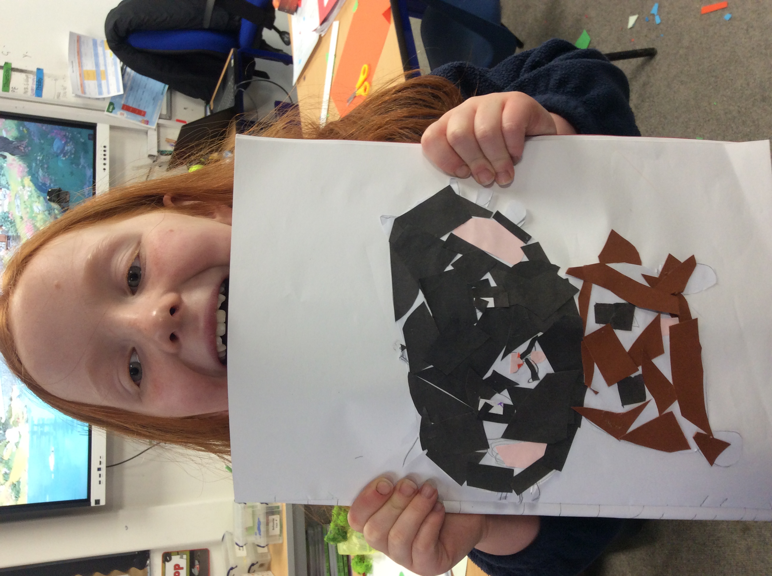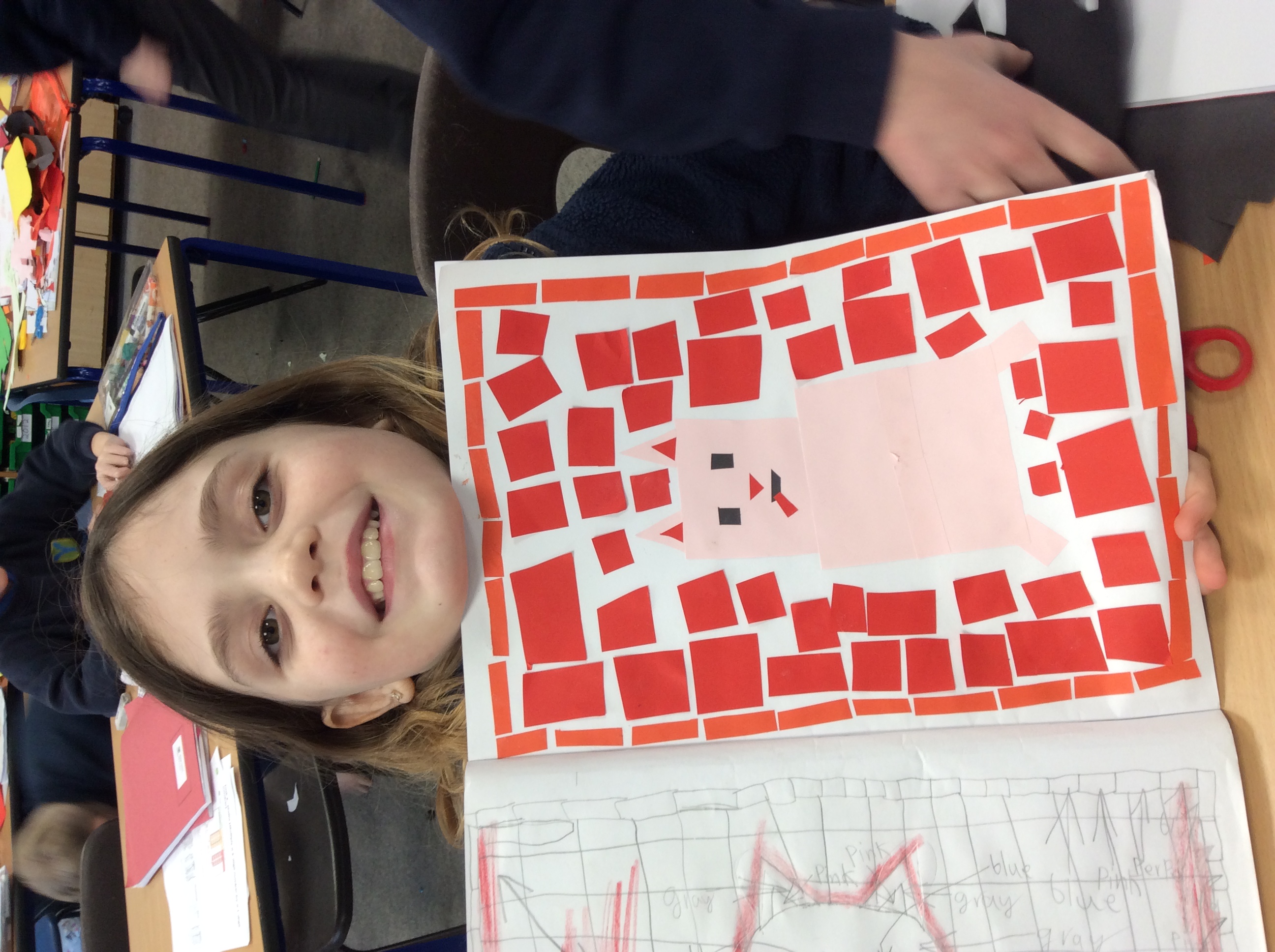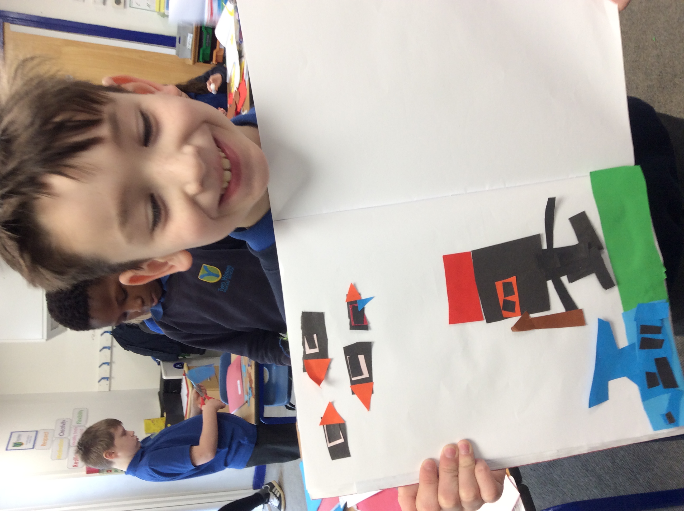 First, we carefully practiced our cutting techniques, focusing on the size and shape, making sure it wasn't too small. Then we moved on to cutting our coloured paper into small shapes. We made rectangles, squares, triangles