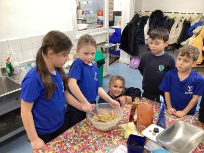 In small groups, the children worked with Mrs Bennett to make delicious flapjacks. Everyone took turns measuring, mixing and preparing the trays. It was a brilliant hands-on experience that linked maths, teamwork and life skills.