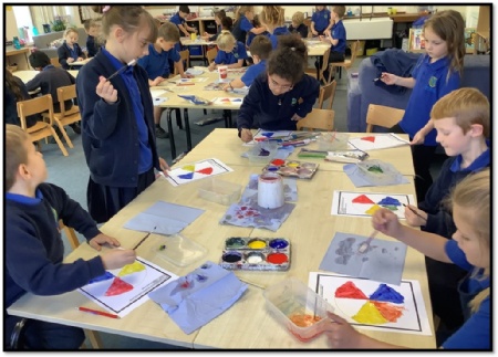 We have been exploring painting techniques and learning all about primary and secondary colours. The children created their very own colour wheels and colour strips, experimenting with mixing paints and discovering the beautiful new colours they could make.