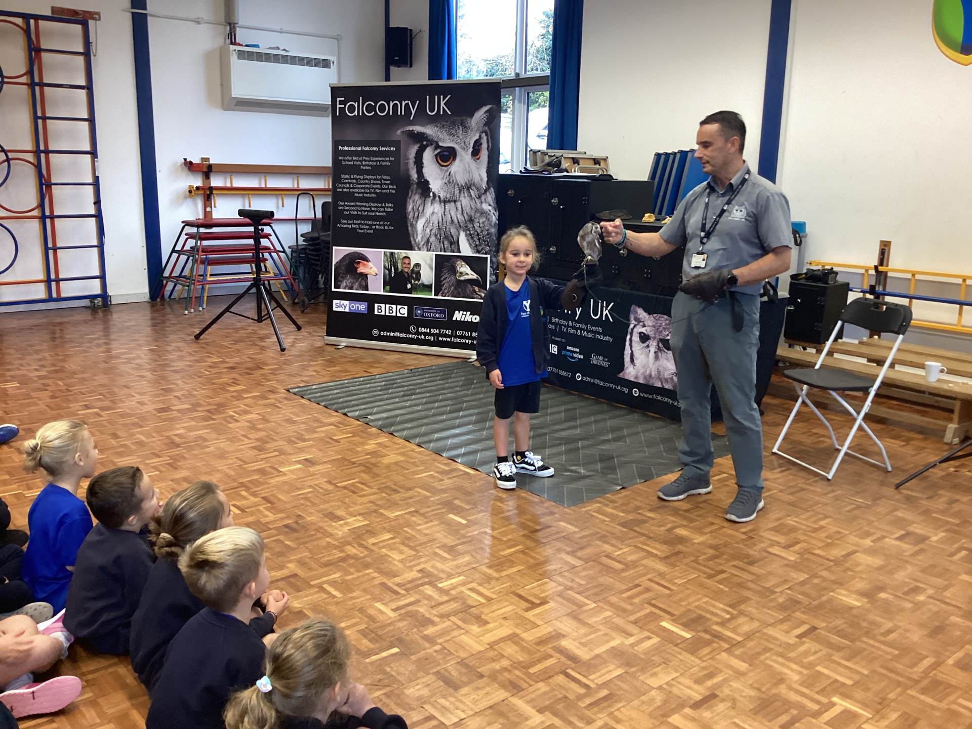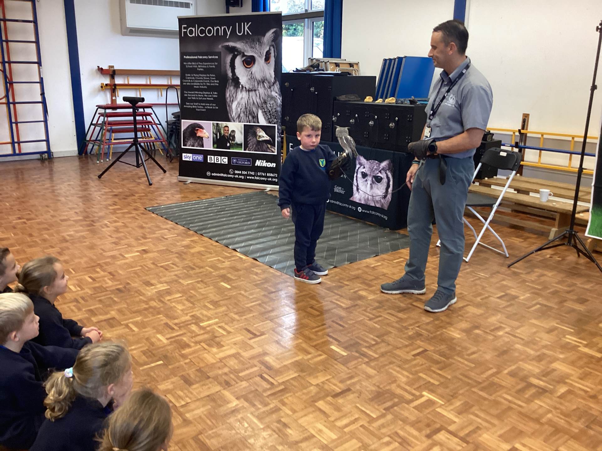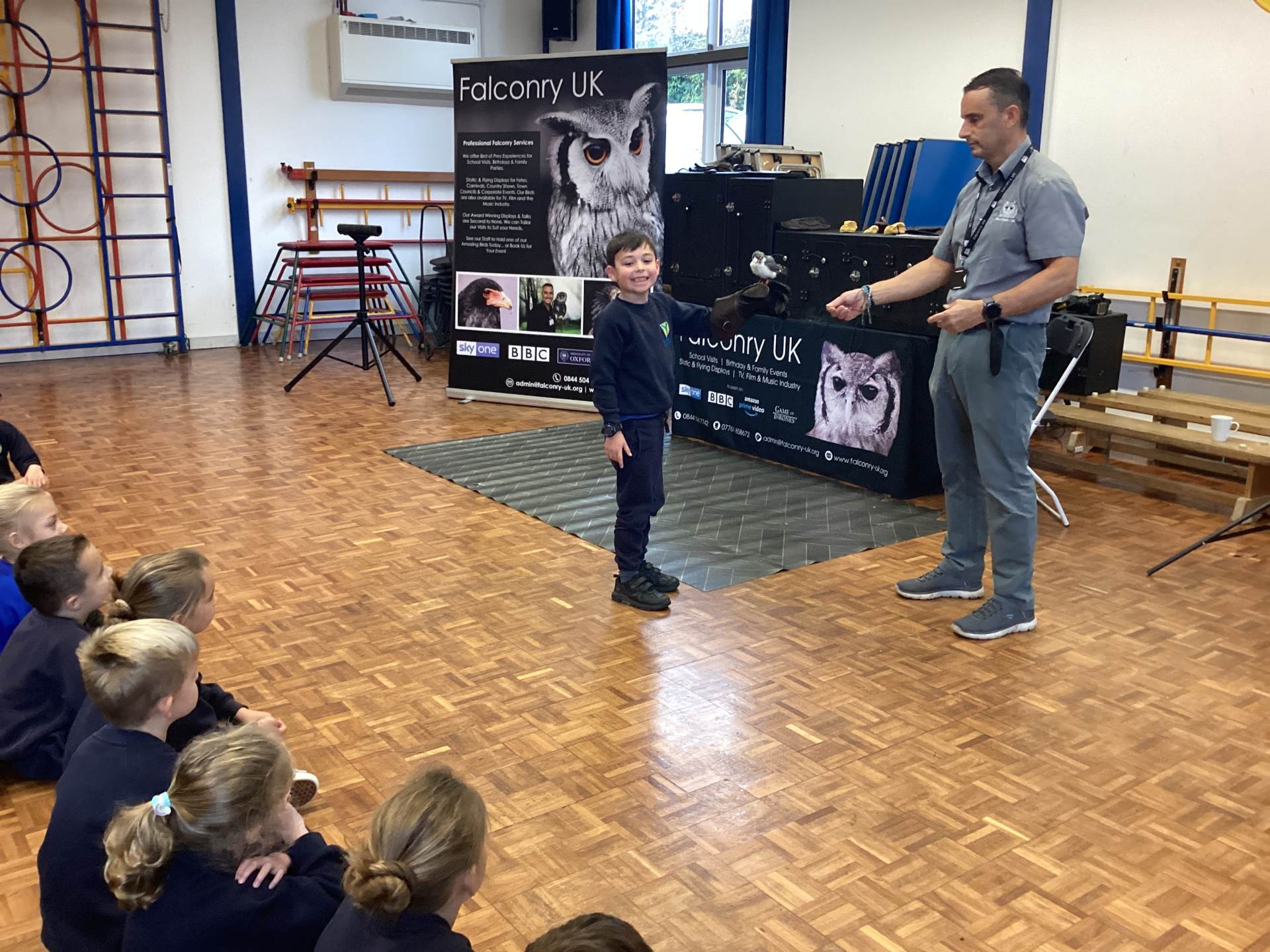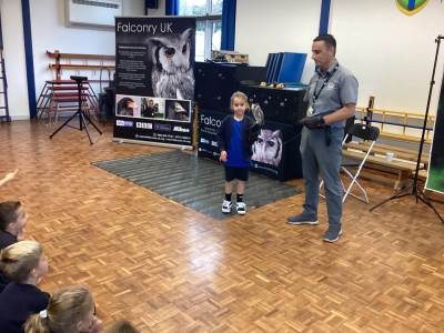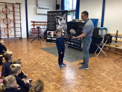 We also had a very exciting visit from Falconry UK. We met a range of amazing birds, including Bailey the white-faced owl and Blu the blue-winged kookaburra. Some of us were even lucky enough to hold the birds and take part in a special photoshoot with them! It was a truly fascinating experience, and we learned so much about these incredible creatures.